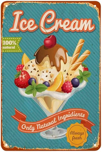 Amazon Com Aoyego Letrero De Estano Para Helado Estilo Poster Con Texto En Ingles Letter Only Natural Ingredientes Para Cafeterias Bares Pubs Tienda Decoracion De Pared Divertido Y Retro Para Hombres Y Mujeres